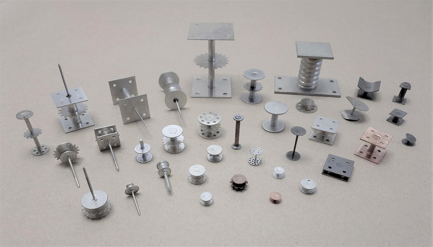 Als Material stehen Stahl verzinnt, Aluminium, Kupfer und VA-Stahl zur Verfügung. Zur Vermeidung von Positionsverschiebungen können die Kernstützen mit Ansteckstiften, Clipsen oder einem speziell für Gussanwendungen entwickelten Kleber versehen werden.
