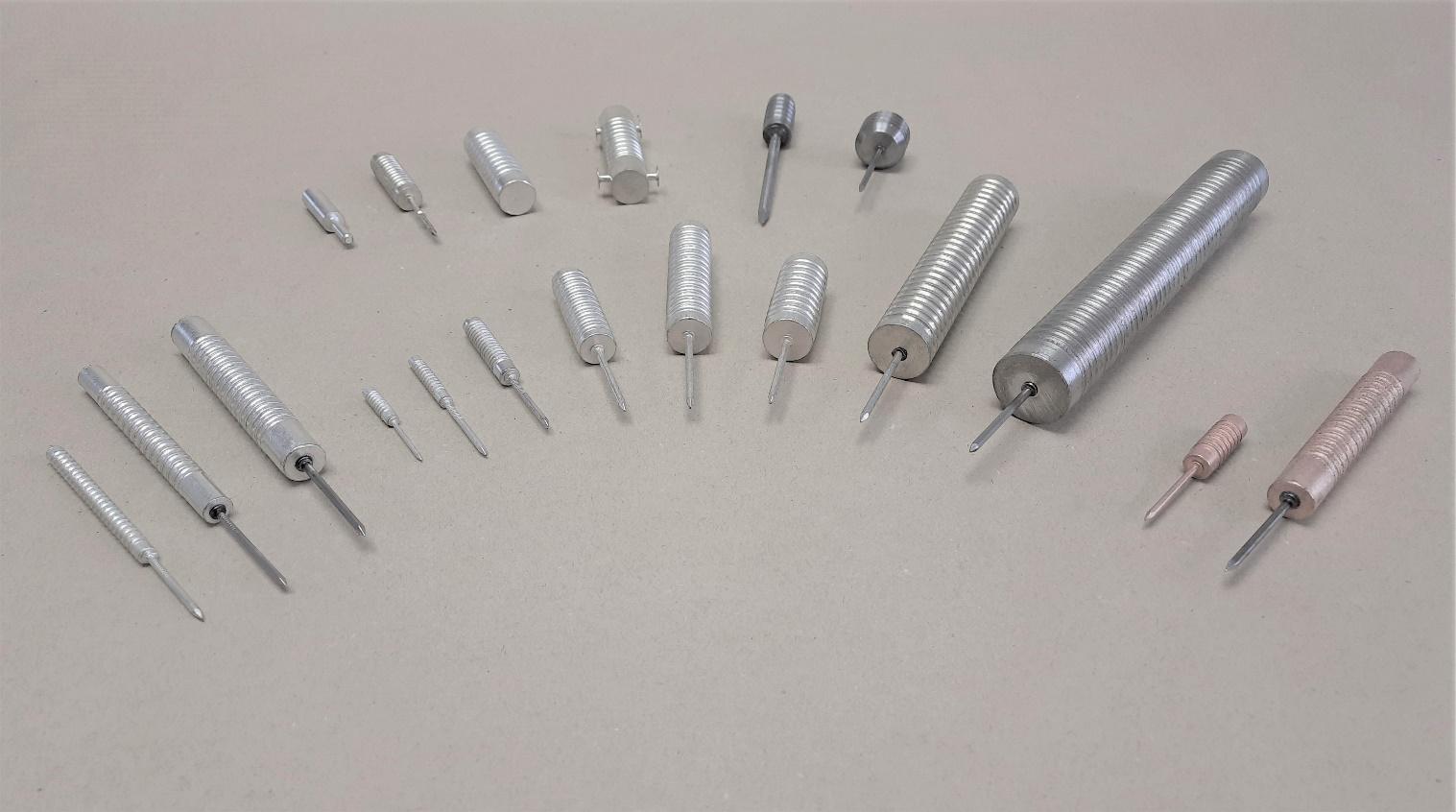 Kühlbolzen und Kühlnägel dienen der Beeinflussung der gezielten Kühlung und damit der Art der Erstarrung der Schmelze des jeweiligen Gussteils. Durch eine gerillte Oberfläche entsteht ein sehr gutes Einschweißverhalten. Zur genauen und sicheren Positionierung im Kern können Motorenböckchen oder Ansteckstifte angeschweißt werden.